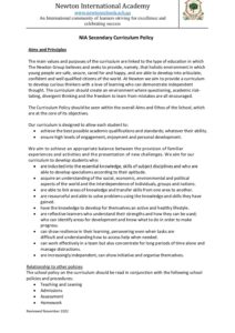 Secondary NIA Curriculum Policy