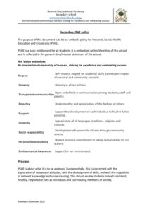 Secondary NIA PSHE policy