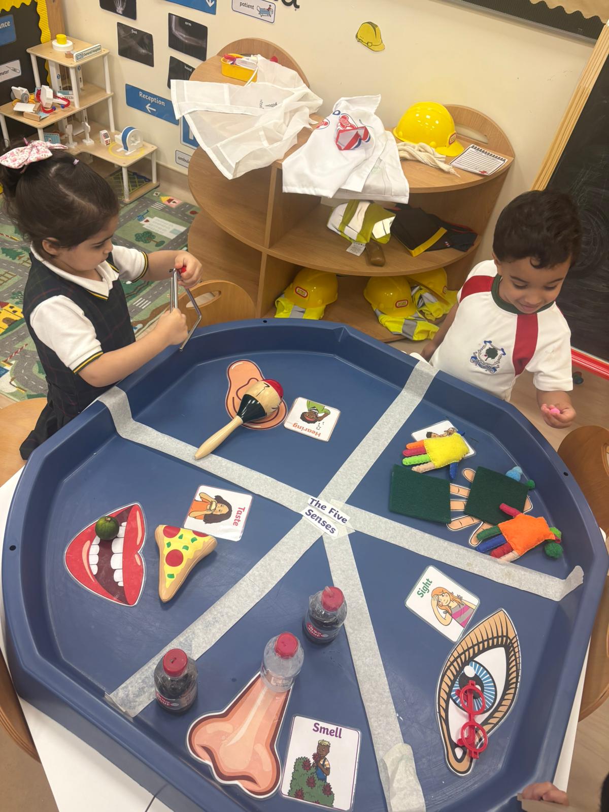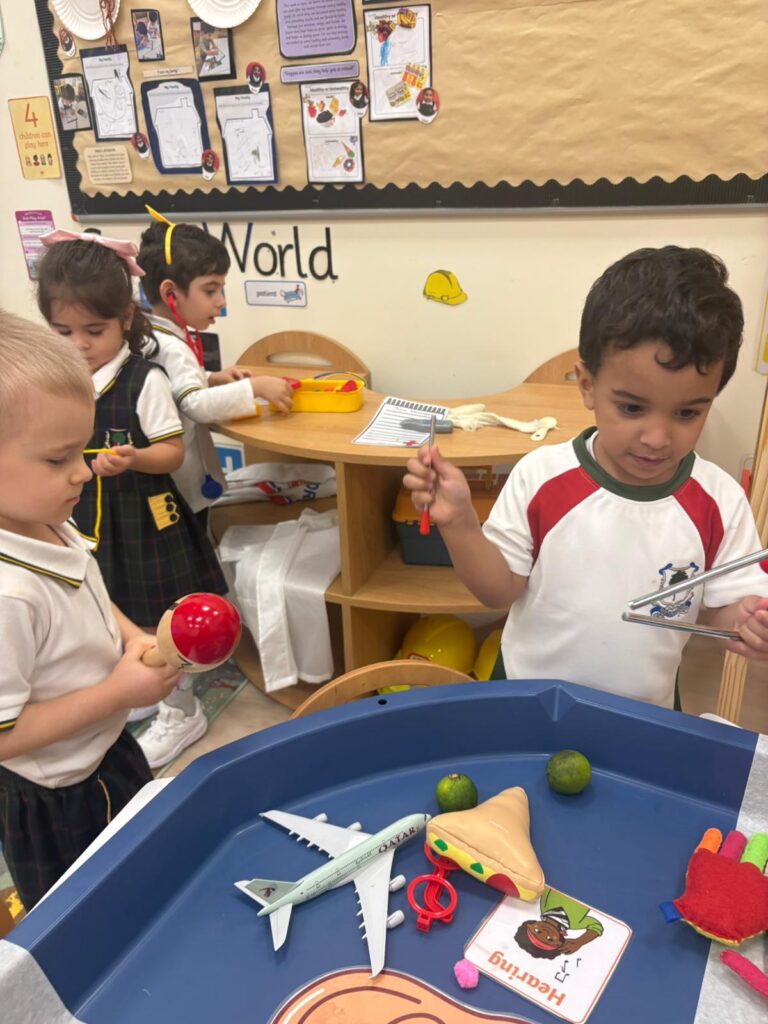 At NIA Lusail in F1, the children have been learning ‘All About Me’ by exploring their five senses! They enjoyed feeling and smelling different items in our tuff tray, creating our very own ‘Mr Potato Heads’ and adding on eyes, ears, noses, and mouths to help us learn what each sense does.