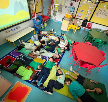 In F2, the children marked Mental Health Awareness Day with a wonderful variety of thoughtful and calming activities. Everyone came to school dressed in green, a colour symbolising harmony, renewal, growth, balance, and hope, representing positivity and fresh starts. Across the classes, children participated in relaxing yoga sessions, bubble breathing exercises, and mindfulness meditation, as well as sharing the story “The Colour Monster” to explore and understand different emotions. Circle time provided opportunities for meaningful discussions about what makes us happy and how we can help others feel good too. In F2 Red, the children also enjoyed sharing fresh green apples, linking healthy eating with feeling good both inside and out. It was a truly uplifting day focused on wellbeing, kindness, and self-care throughout F2.