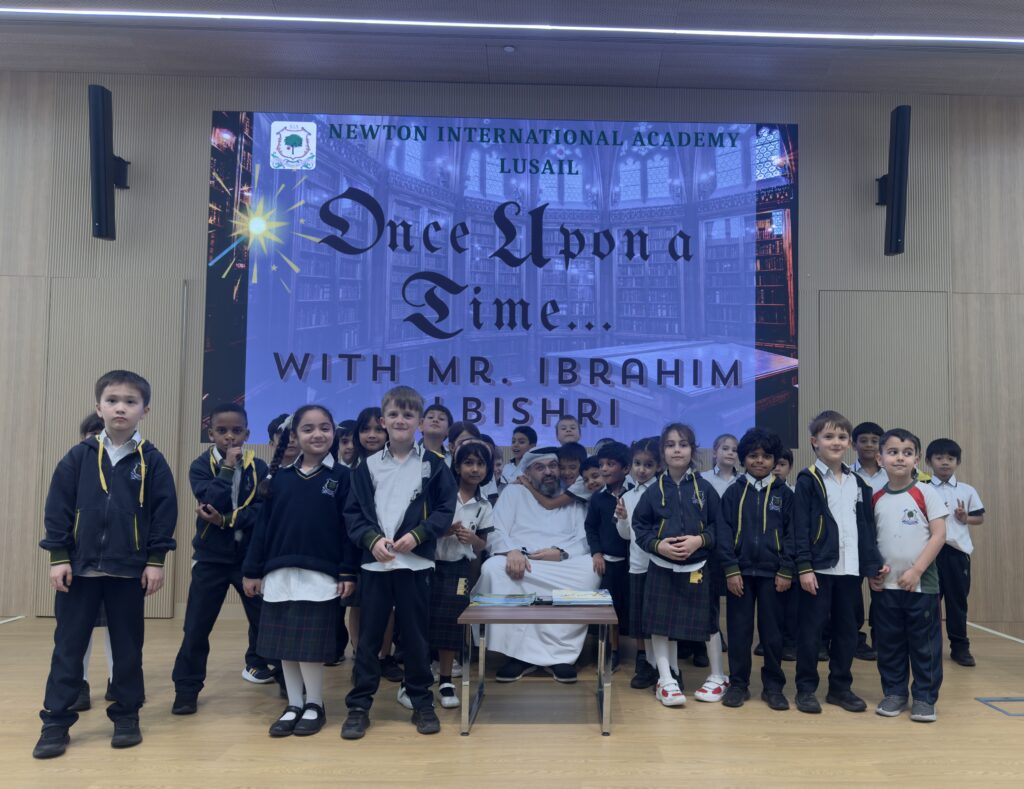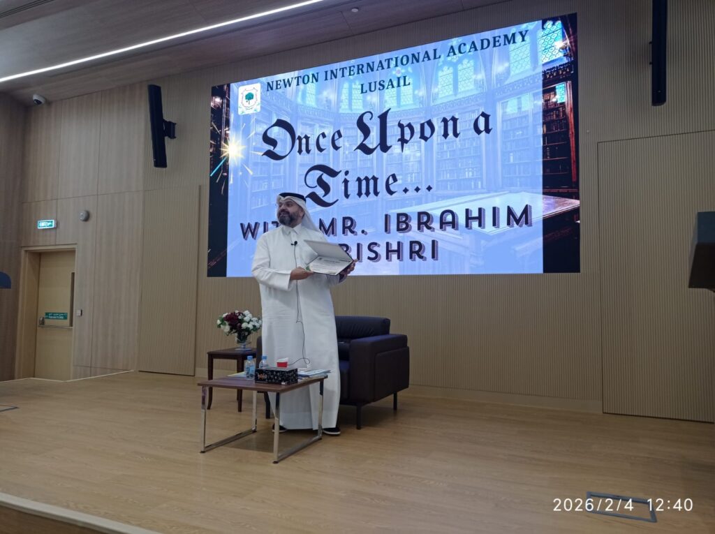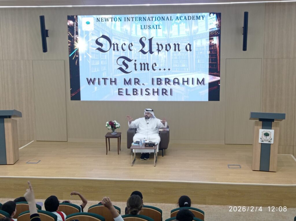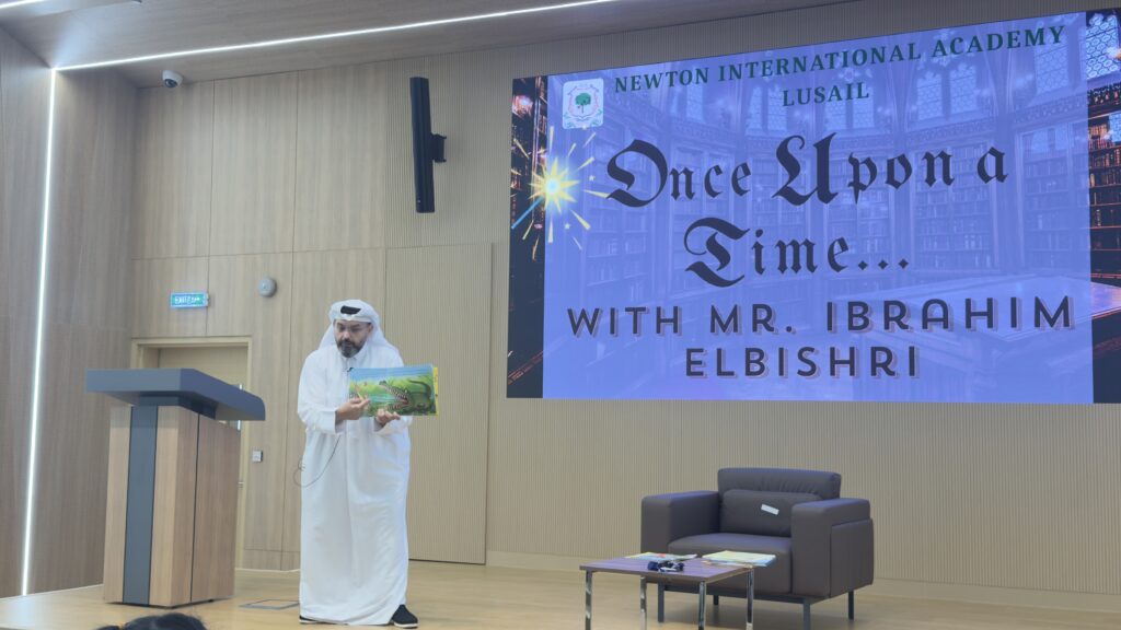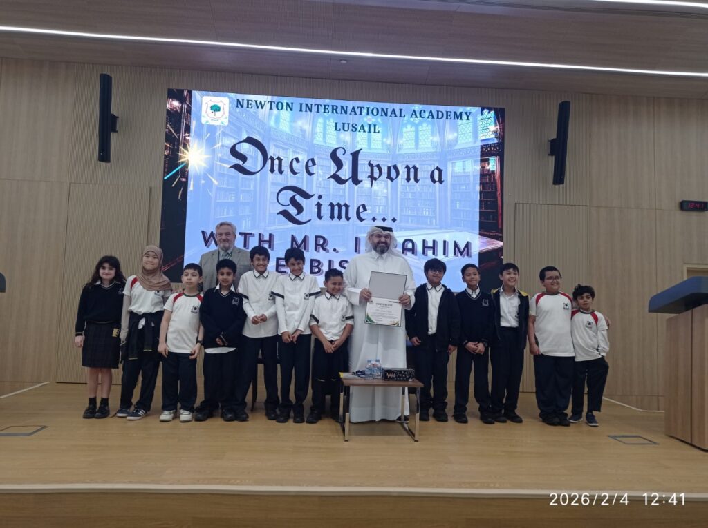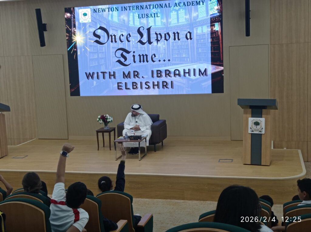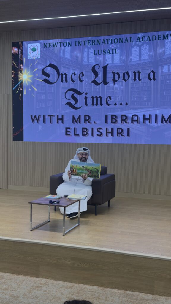 The Newton Group Library Department had the pleasure of inviting Mr. Ibrahim Elbishri to NIA Lusail, where he conducted an interactive storytelling session with our students. During the visit, he captivated the students with his exceptional storytelling talent, bringing stories to life through expressive voice acting and performance. His ability to act out the stories created a lively and immersive atmosphere, encouraging strong student participation and interaction. The students thoroughly enjoyed the session, showing great enthusiasm and excitement throughout the experience.