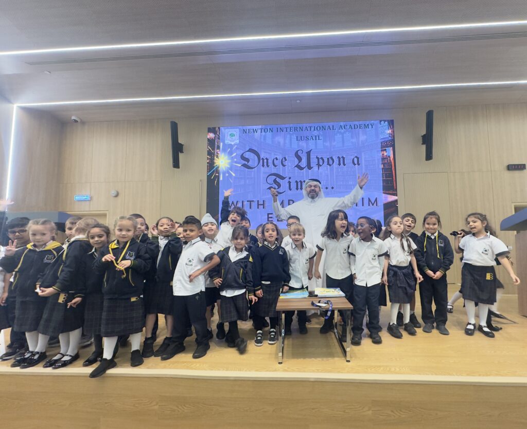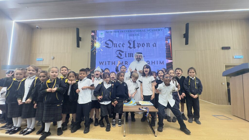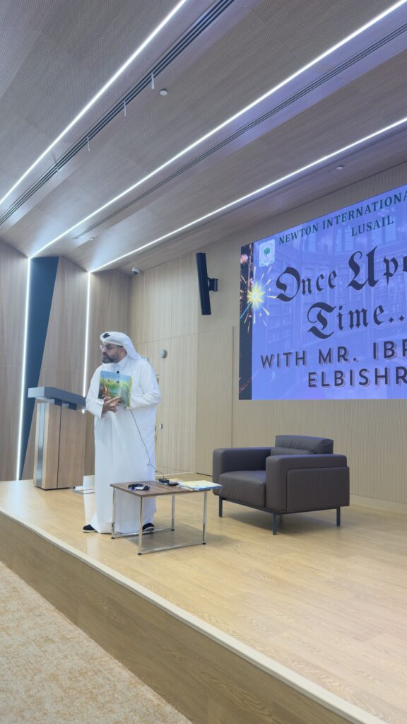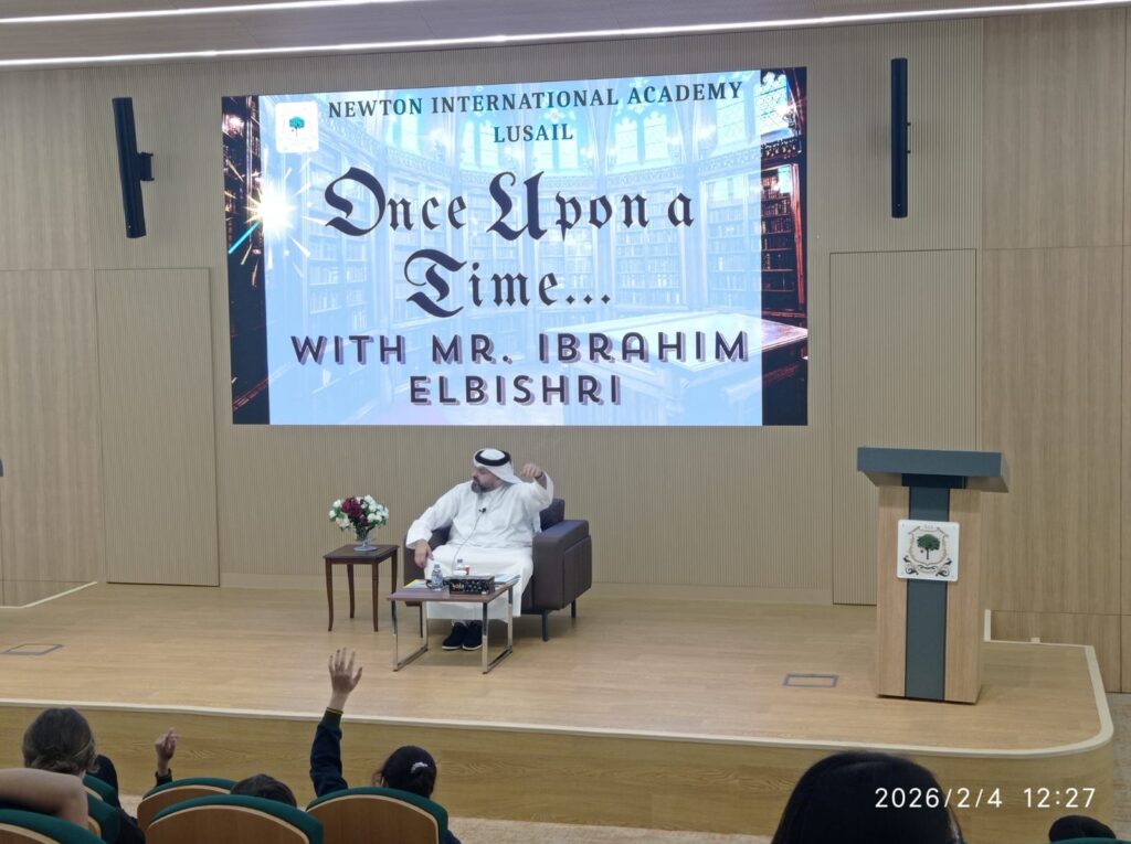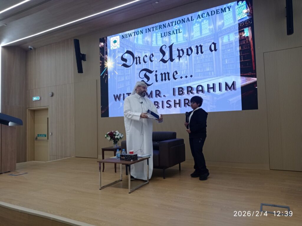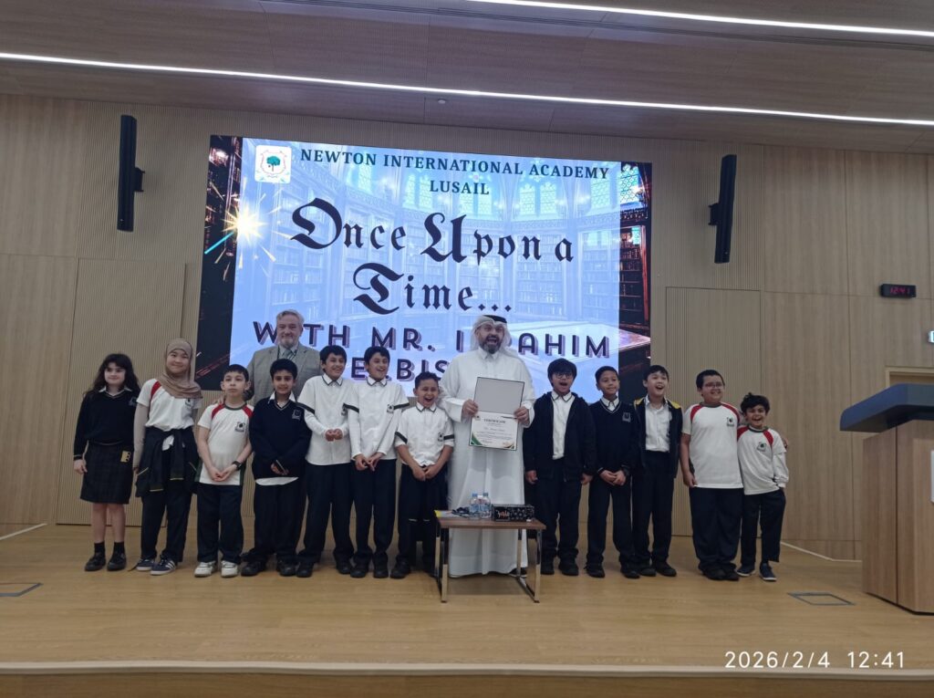 The Newton Group Library Department had the pleasure of inviting Mr. Ibrahim Elbishri to NIA Lusail, where he conducted an interactive storytelling session with our students. During the visit, he captivated the students with his exceptional storytelling talent, bringing stories to life through expressive voice acting and performance. His ability to act out the stories created a lively and immersive atmosphere, encouraging strong student participation and interaction. The students thoroughly enjoyed the session, showing great enthusiasm and excitement throughout the experience.