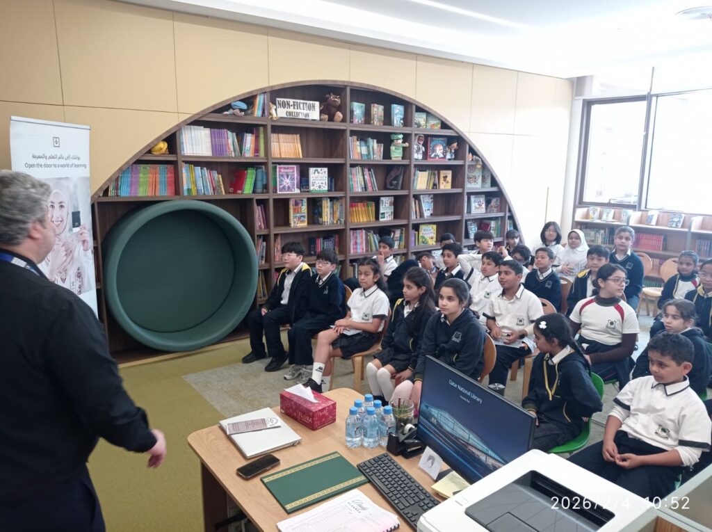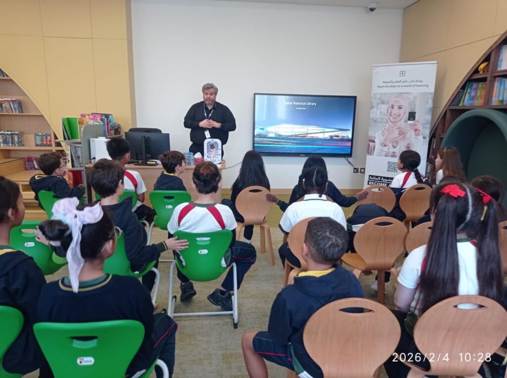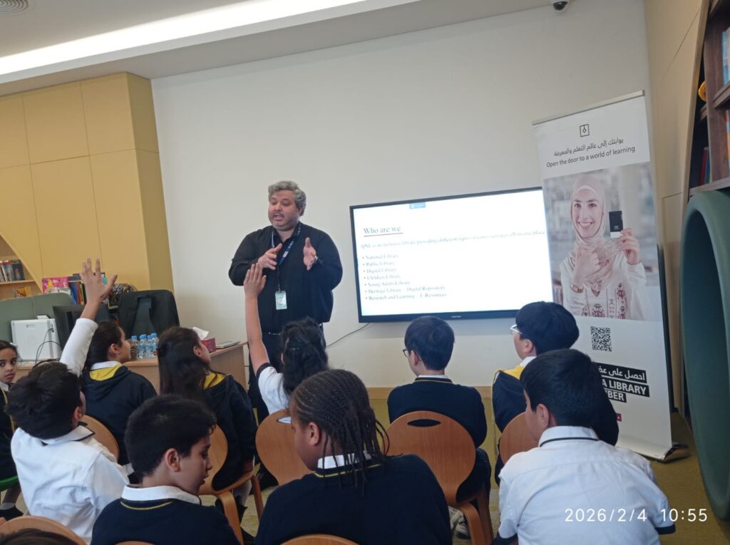 Mr. Talal conducted two interactive sessions, one for Primary students on the 4th of February 2026 and one for Secondary students 20th of January 2026. The sessions were highly engaging, and students showed great enthusiasm throughout. They were introduced to QNL’s wide range of digital and physical resources, including e-books, databases, and learning platforms available to all QNL members.